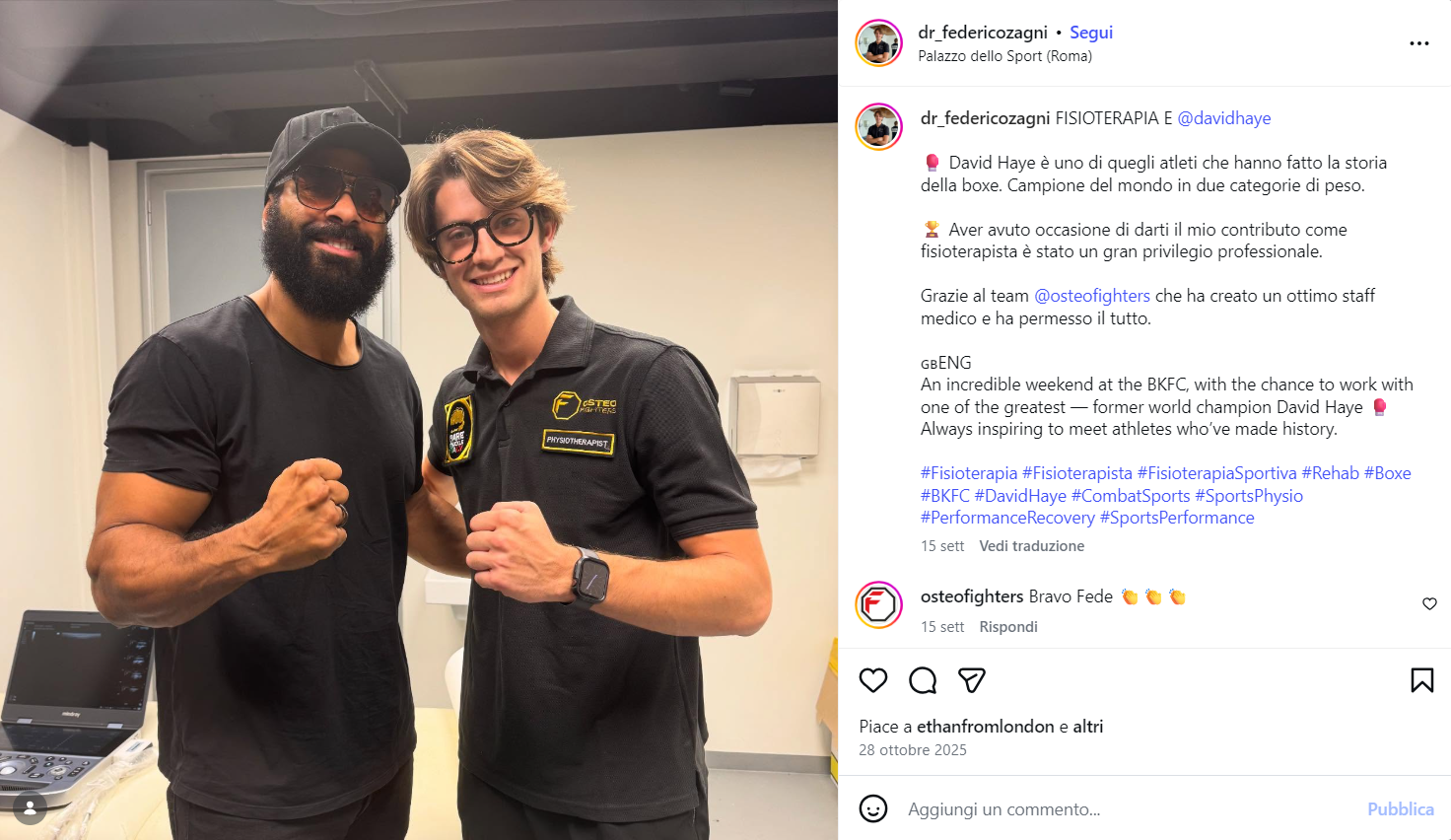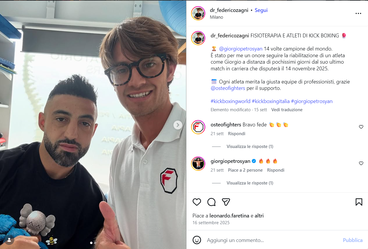 Ho avuto l’onore di lavorare con atleti di livello mondiale — dal campione di boxe Davide Haye a Giorgio Petrosyan, 14 volte campione del mondo di kickboxing.